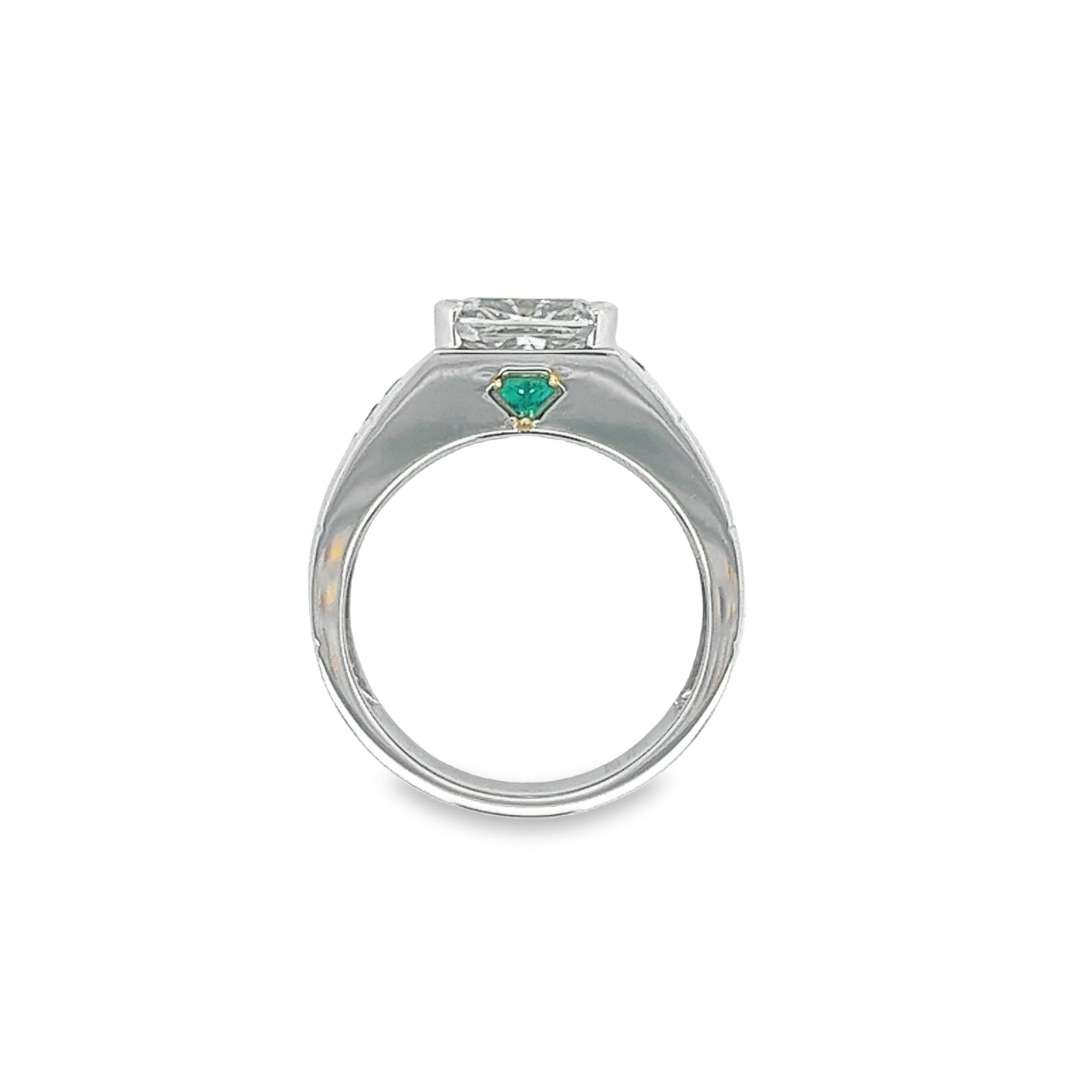 18K Gold Mens Ring with 3.2 Carat Cushion Cut Lab Diamond With Black Diamond Sides