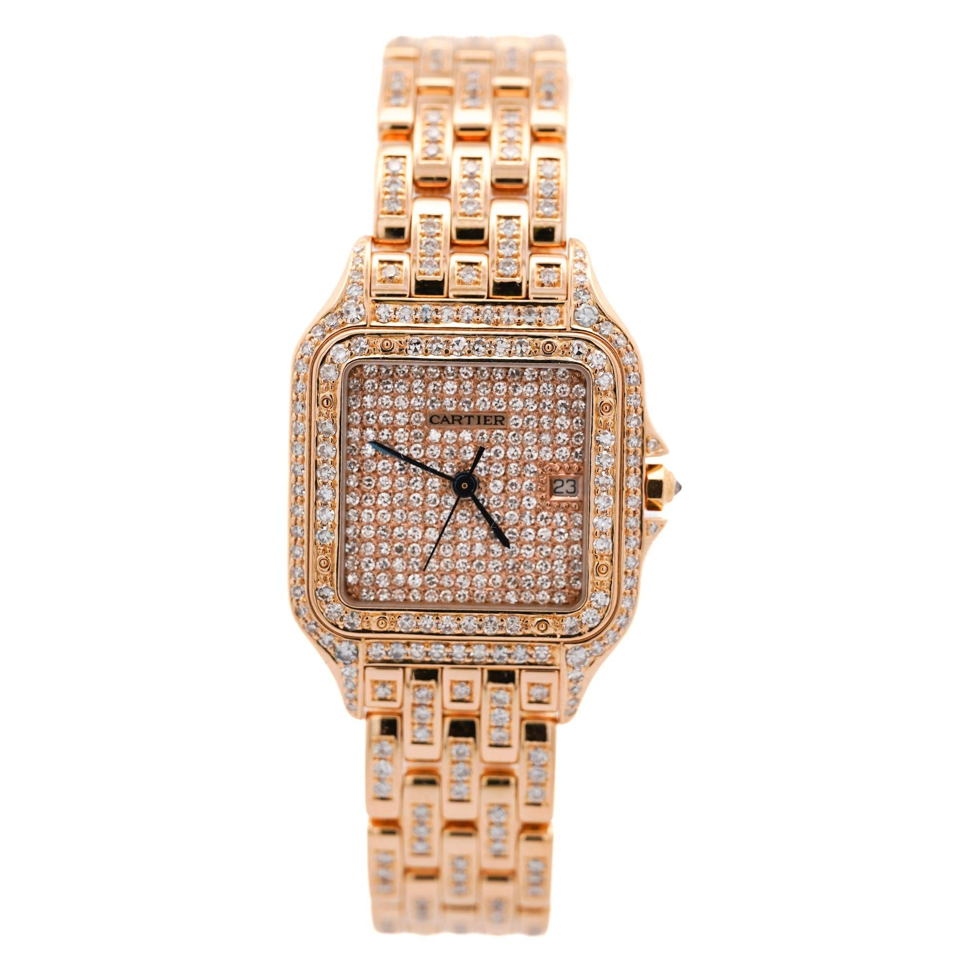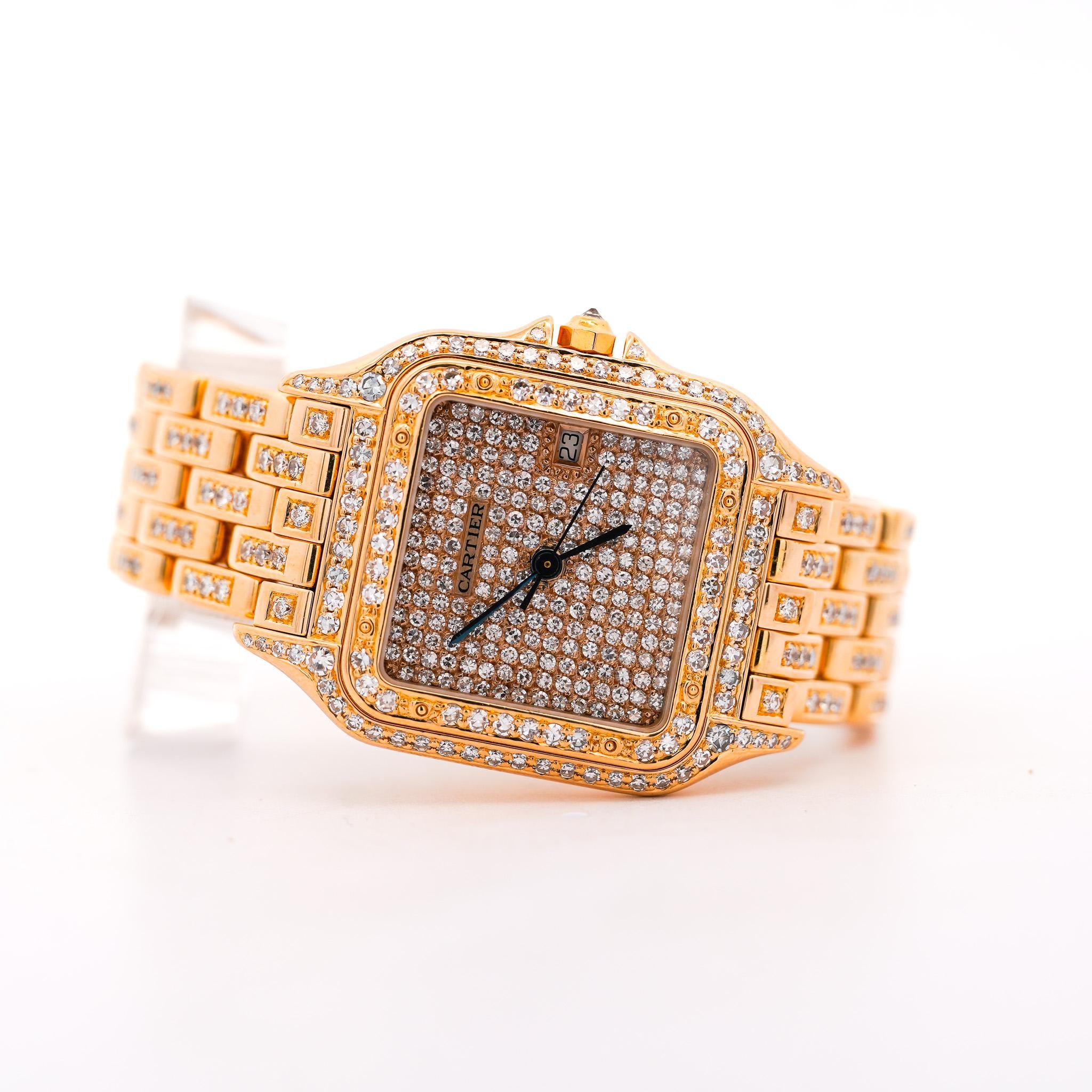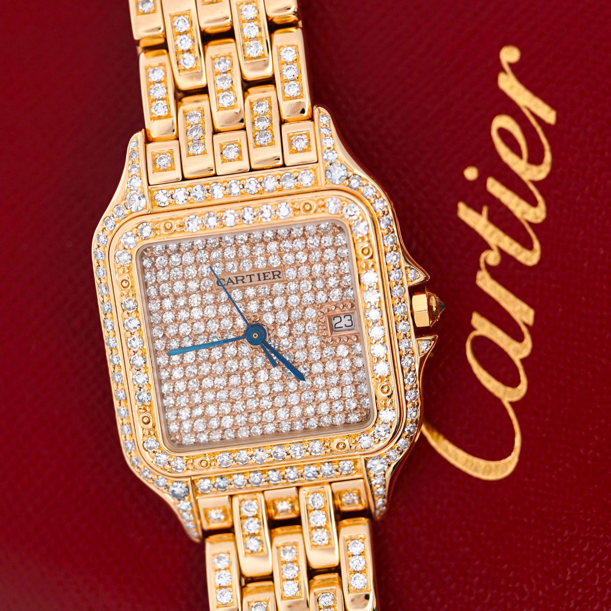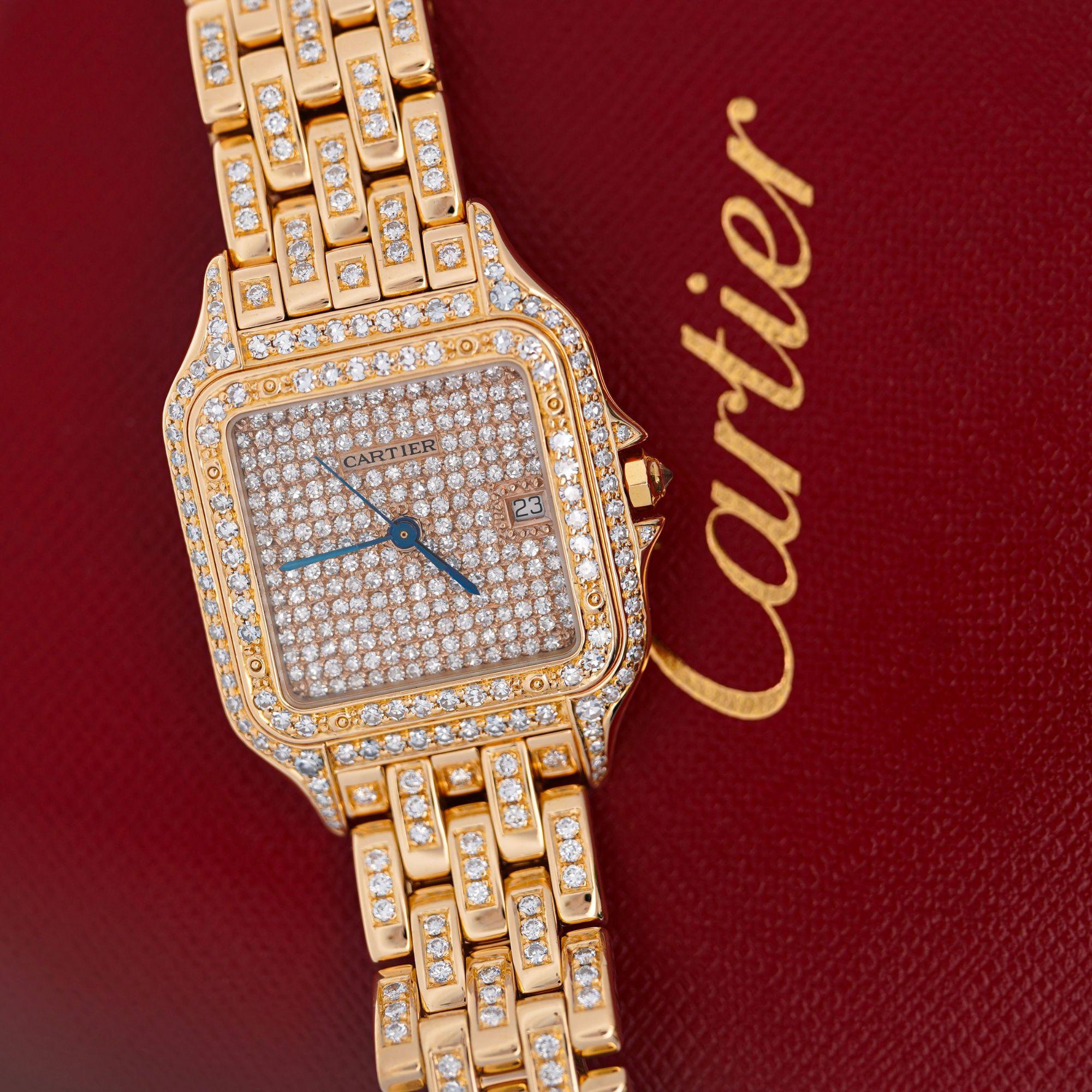 Cartier Panthere Full Factory Diamond 27mm 18K Gold Watch Ref 008133
