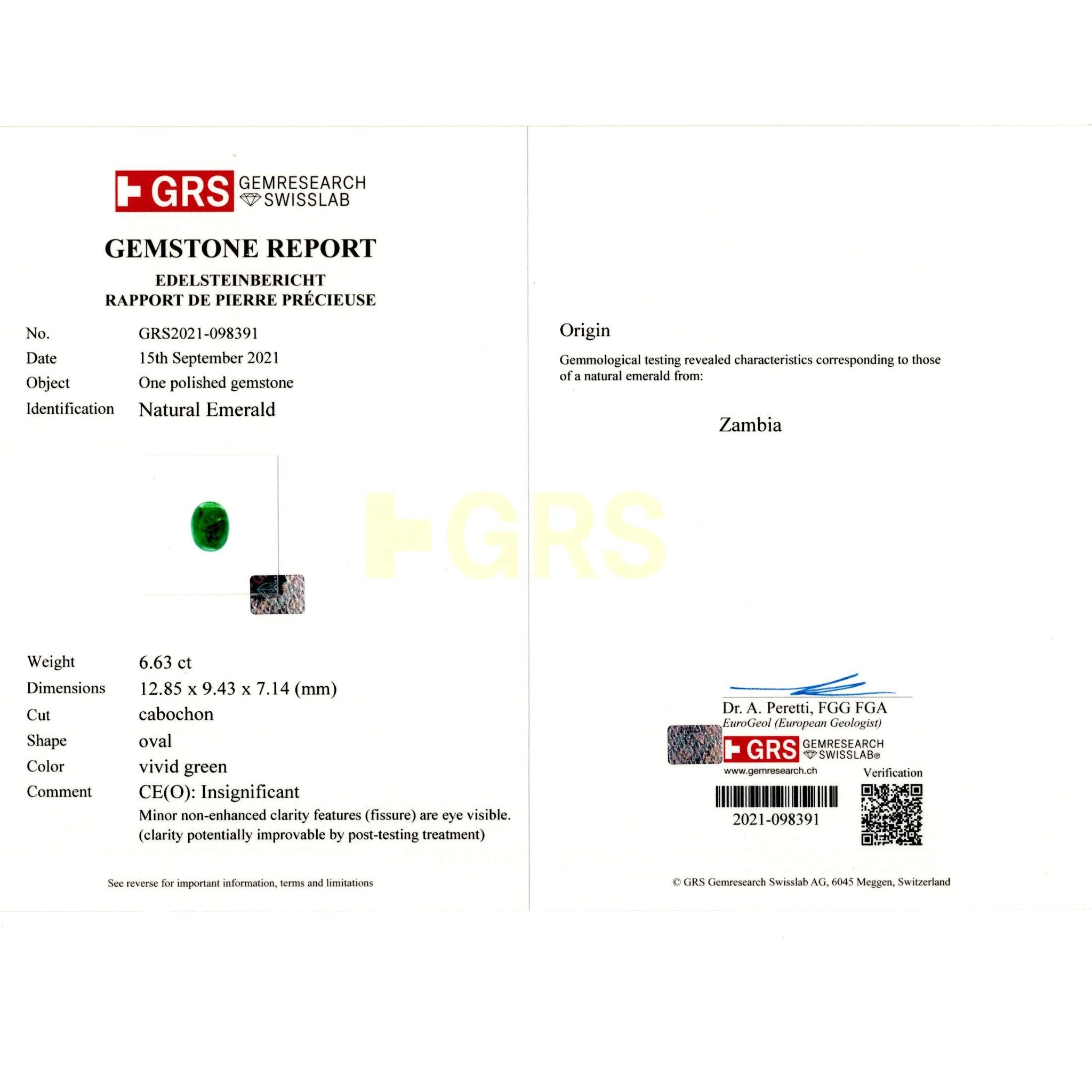 GRS-certified 17.3 carat total cabochon cut Zambian emerald and diamond clip-on earrings. Featuring 4.71 carats in baguette cut diamonds forming a halo around the bezel set center stone. The emeralds, 6.63 carats and 5.96 carats, are a certified vivid green color.Â