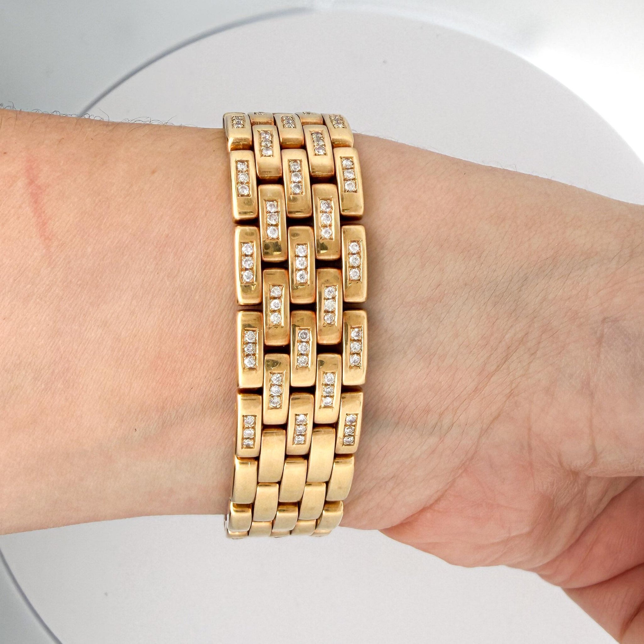 Cartier Panthere large 27mm quartz watch in 18K yellow gold featuring a pave diamond bezel, dial, and bracelet. Gross wight 102.8 grams. Ref 887968.