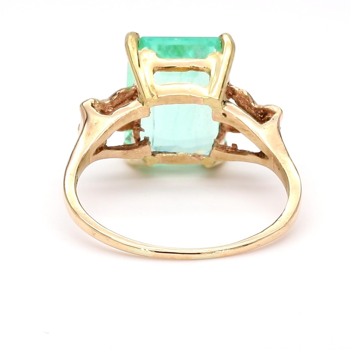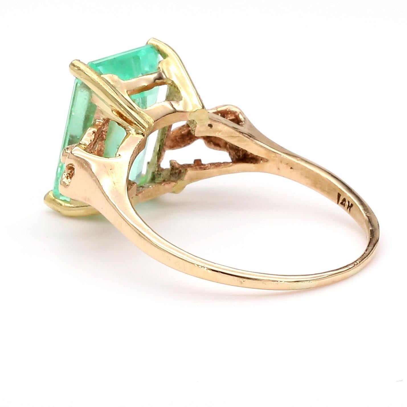 Vintage 3.58 Carat Pastel Green Colombian Emerald 14K Gold Solitaire Scroll Ring