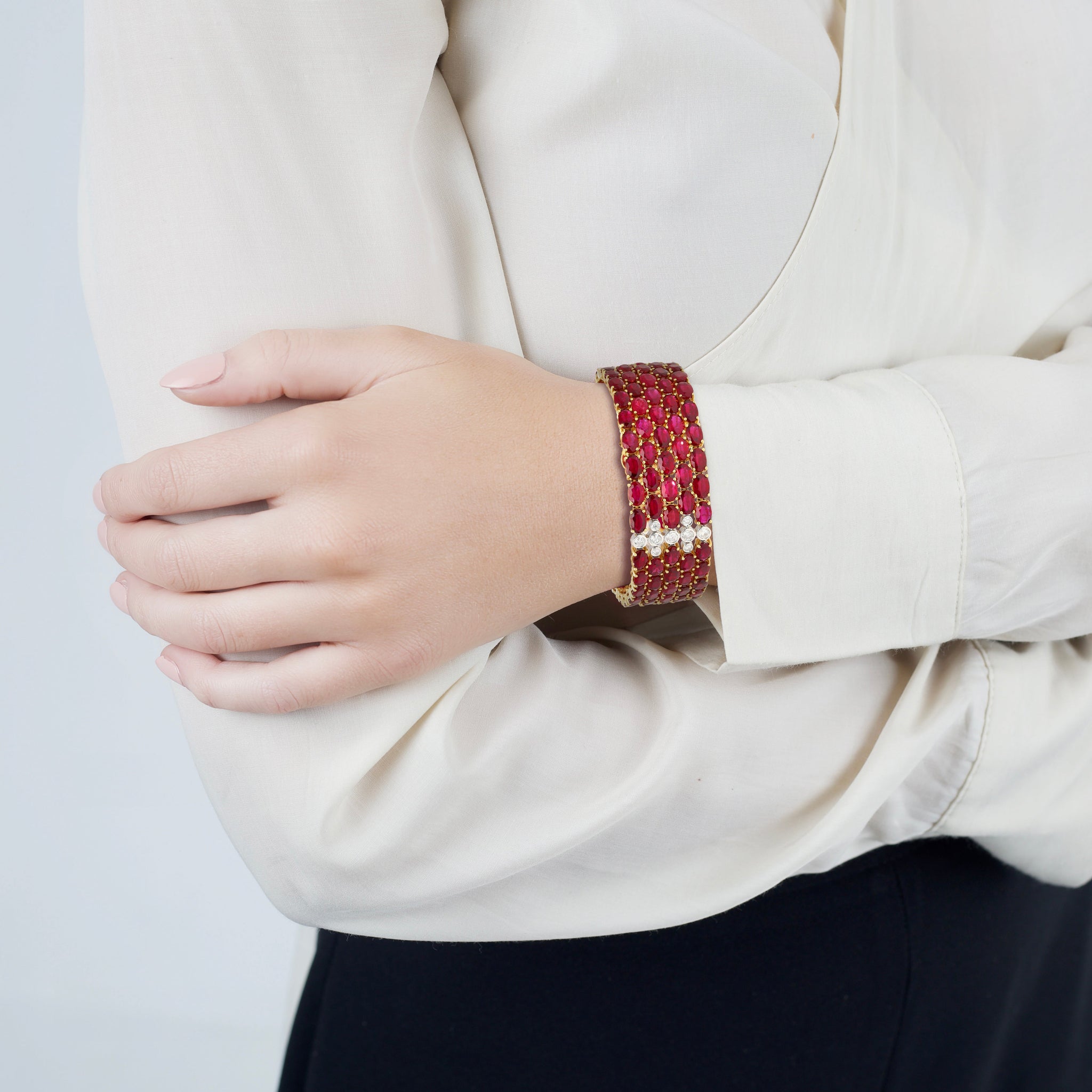 72 Carat Oval Ruby 5-Row Multi Link Tennis Bracelet in 18K Gold
